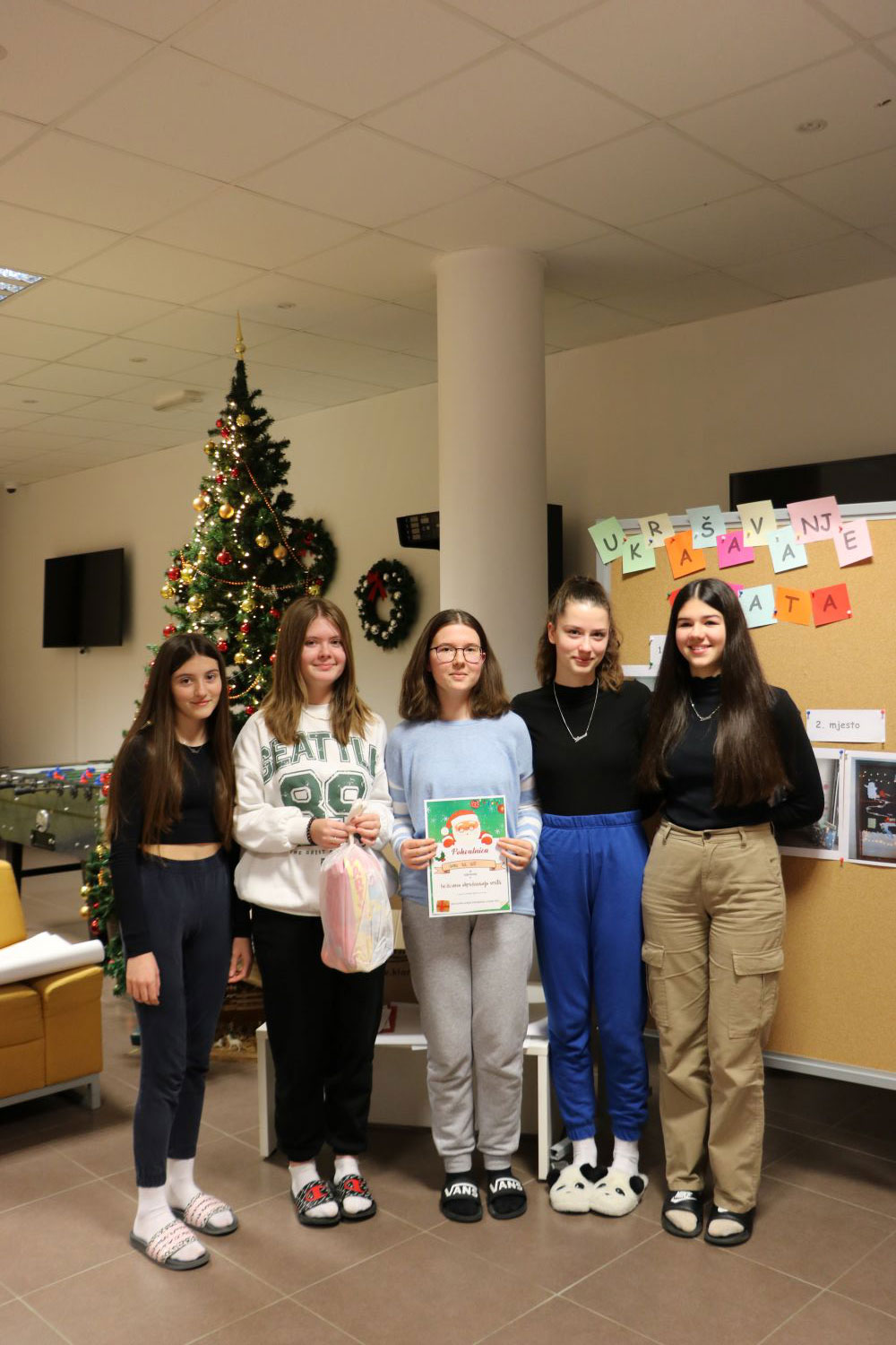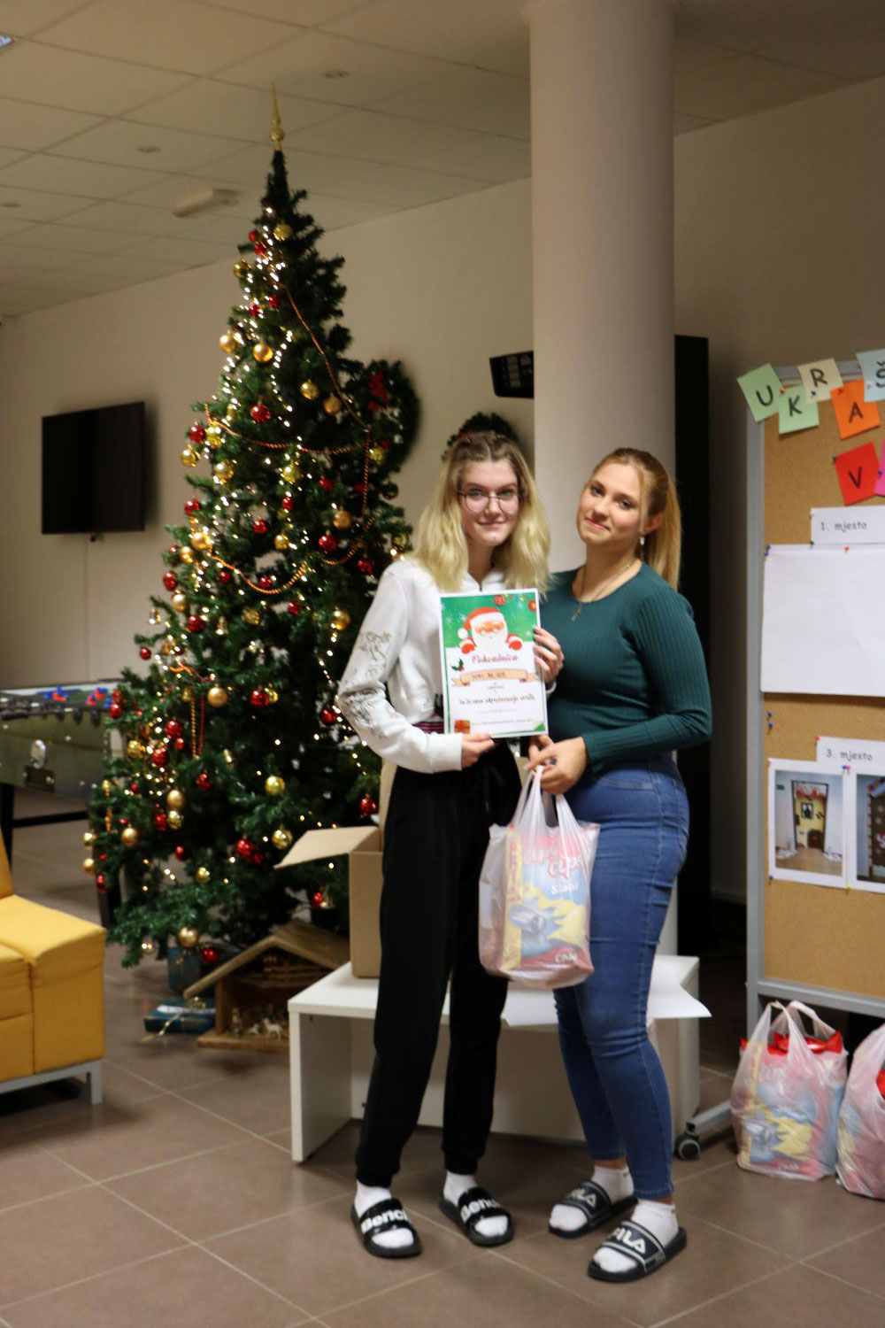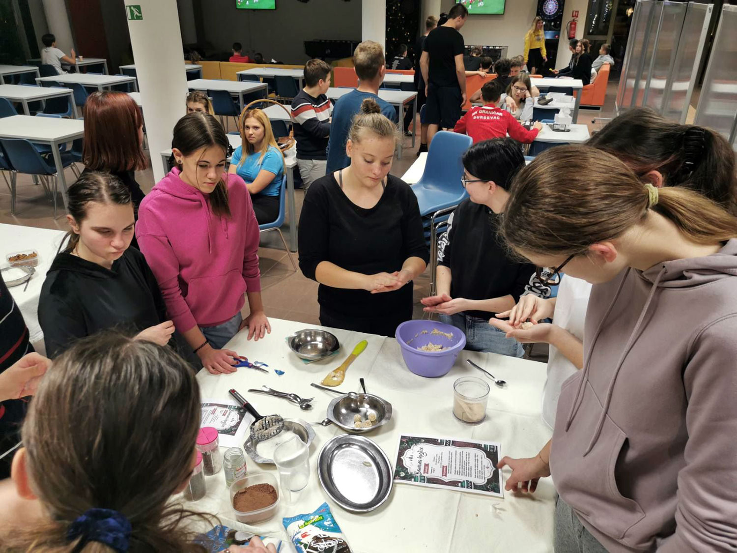 Mirisi nadolazećeg Božića kucaju na naša vrata. U sklopu projekta „Srijeda bez mobitela“ održana je radionica izrade božićnih kolača. Marljive ruke naših učenika pripremile su slatke zalogaje koje su ponudili prisutnima te ih kušali. U blagdanskom ruhu zasjala su i vrata spavaonica naših učenika koji su nastojali svoju kreativnost pretočiti u umjetničko djelo.